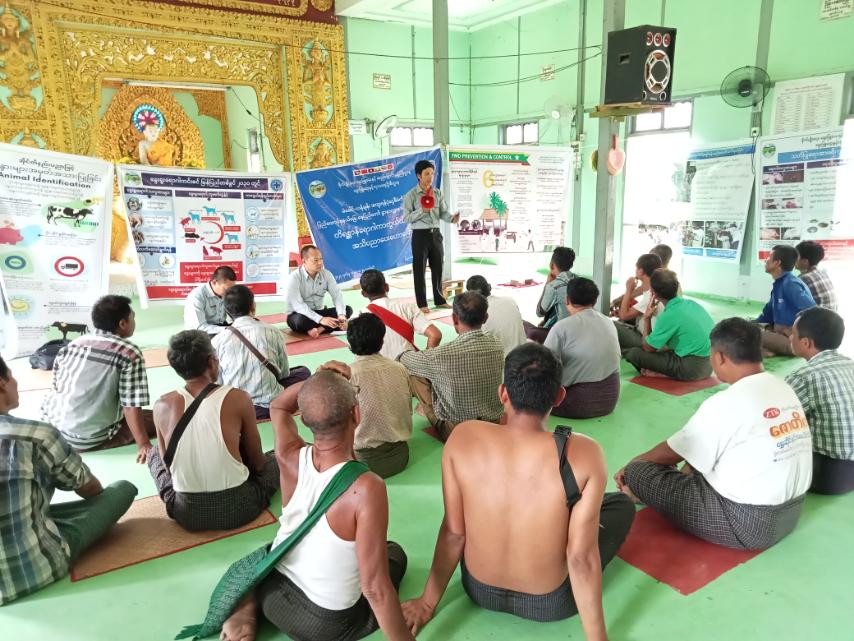ခွာနာလျှာနာ (FMD) ရောဂါနှင့် ဆက်စပ်ရောဂါများအကြောင်းအားလည်းကောင်း၊ မြို့နယ်မွေးမြူရေးနှင့် ကုသရေးဦးစီးဌာနမှ မြို့နယ်ဦးစီးမှူး ဒေါက်တာမာလာသင်းက တိရစ္ဆာန်ကျန်းမာရေးဝန်ဆောင်ခြင်း ဆောင်ရွက်ပေးနိုင်မှုနှင့် ကူးစက်ရောဂါသတင်းပေးပို့မှုစနစ် ဆောင်ရွက်ရေး ရှင်းလင်းဟောပြောခဲ့ကြပြီးနောက် တက်ရောက်လာသည့်ဒေသခံများ၏ သိရှိလိုသည်များကို တာဝန်ရှိသူများက ပြန်လည်ဖြေကြားကာ မွေးမြူရေးနှင့်ပတ်သက်သည့် လက်ကမ်းစာစောင်များဖြန့်ဝေပေးခဲ့ပြီး အဆိုပါ ဟောပြောပွဲသို့ မွေးမြူရေးလုပ်ငန်းလုပ်ကိုင်သူ ၃၅ ဦး တက်ရောက်ခဲ့သည်။