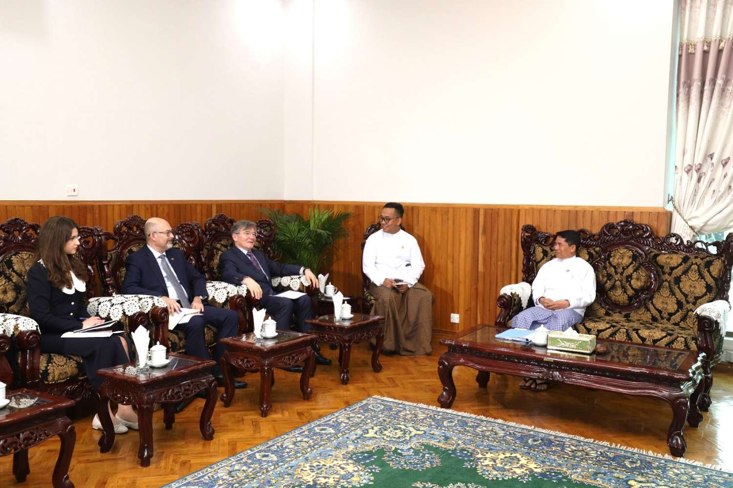 မြန်မာနိုင်ငံဆိုင်ရာ ရုရှားသံအမတ်ကြီးနှင့်တွေ့ဆုံစဉ် မြန်မာ-ရုရှား နှစ်နိုင်ငံအကြား ငါးလုပ်ငန်း ပူးပေါင်းဆောင်ရွက်မှုဆိုင်ရာ နားလည်မှုစာချွန်လွှာ လက်မှတ်ရေးထိုးရေး နှစ်ဖက်ညှိနှိုင်းဆောင်ရွက်နေမှု၊ တတိယအကြိမ် ရုရှား−မြန်မာ အစိုးရအချင်းချင်း ကုန်သွယ်မှုနှင့် စီးပွားရေးပူးပေါင်းဆောင်ရွက်မှုကော်မရှင်အစည်းအဝေး၏ သဘောတူညီမှုများအား ပူးပေါင်းဆောင်ရွက်နေမှု၊ မြန်မာနိုင်ငံနှင့် ရုရှားဖက်ဒရေးရှင်းနိုင်ငံတို့အကြား စားရေရိက္ခာဖူလုံရေးဆိုင်ရာ ဆက်စပ်ဆွေးနွေးပွဲရလဒ်မှ နှစ်နိုင်ငံ ပူးပေါင်းဆောင်ရွက်လိုသည့် ဦးစားပေးလုပ်ငန်းများ၊ မြန်မာနိုင်ငံတွင် သဘာဝအပင်ကြီးထွားဆေးစက်ရုံ တည်ဆောက်ရန်ကိစ္စရပ်၊ မြန်မာ့ ရေ၊ မြေ၊ ရာသီ ဥတု၊ သီးနှံလိုအပ်ချက်နှင့် ကိုက်ညီမှုရှိသည့် ဓာတ်မြေဩဇာများ ရုရှားနိုင်ငံမှ တင်သွင်းနိုင်ရေးနှင့် ဆန်နှင့်ပဲမျိုးစုံ အပါအဝင် မြန်မာ့လယ်ယာထွက်ကုန်များအတွက် ဈေးကွက် အခွင့်အလမ်းရရှိရေး ပူးပေါင်းဆောင်ရွက်ရန်ကိစ္စရပ်များကို ရင်းနှီးပွင့်လင်းစွာ ဆွေးနွေးကြသည်။