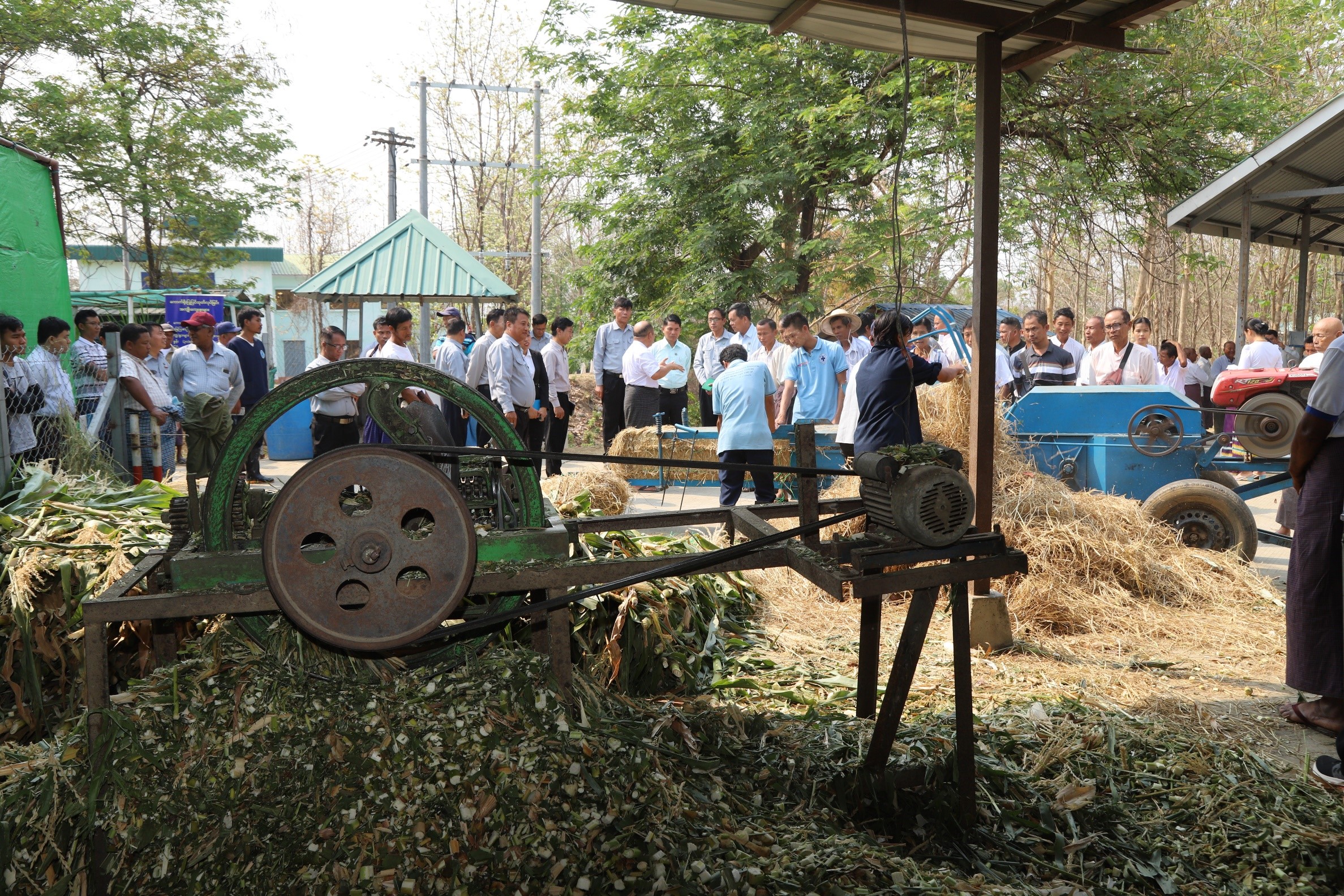 ထို့နောက် မွေးမြူရေးနှင့်ကုသရေးဦးစီးဌာန ညွှန်ကြားရေးမှူးချုပ် ဒေါက်တာ ရဲထွန်းဝင်း နှင့် တာဝန်ရှိသူများက တိရစ္ဆာန်အစာချဉ်ဖတ်ပြုလုပ်ခြင်း၊ သိုလှောင်ခြင်း နှင့် ကျွေးမွေးခြင်းလုပ်ငန်းစဉ်များကို ရှင်းလင်းဆွေးနွေးပြီး လက်တွေ့သရုပ်ပြသကြရာ မွေးမြူရေးတောင်သူများက သိရှိလိုသည်များကို စိတ်ဝင်စားစွာ မေးမြန်းဆွေးနွေးခဲ့ကြ သည်။ဆက်လက်၍ မွေးမြူရေးလုပ်ငန်းရှင်များနှင့်မွေးမြူရေးတောင်သူများ၏ နို့စားနွား မျိုးဖြန့်ဖြူးရေးခြံအတွင်း လှည့်လည်ကြည့်ရှုခဲ့ကြသည်။ မိုးရေကောင်းစွာရရှိသည့် မိုးရာသီကာလများတွင် တိရစ္ဆာန်များ အတွက် အာဟာရ ပြည့်ဝသော မြက်၊ ပြောင်း စသည့် အစာစိမ်းများ ရရှိသောကြောင့် တိရစ္ဆာန်များ ၏ ကြီးထွားနှုန်းကောင်းမွန်သဖြင့် ထုတ်လုပ်မှုမြင့်မားသော်လည်း ခြောက်သွေ့ ကာလများ နှင့် ရေရှားပါးသည့် ဒေသများတွင် တိရစ္ဆာန်အစာပင်များ ဖြစ်ထွန်းမှု မရှိခြင်း ၊ တိရစ္ဆာန် အစာပင်များကောင်းစွာရှင်သန်ဖြစ်ထွန်းရန်ခက်ခဲခြင်း၊ တိရစ္ဆာန်အစာပင်များထုတ်လုပ်ရန် စရိတ် ကြီးမြင့်ခြင်းတို့ကြောင့် မွေးမြူရေးလုပ်ငန်း အတွက် လိုအပ်သော တိရစ္ဆာန်အစာ ပမာဏကို အလုံအလောက်ထုတ်လုပ်နိုင်ရန် လိုအပ်လျက်ရှိရာ စပါး စိုက်ပျိုး သည့် ဒေသတိုင်း တွင် အလွယ်တကူရရှိနိုင်သော ကောက်ရိုးများကို ပြုပြင်ကျွေးမွေးနိုင်ရေး နှင့် ပြောင်းသီးနှံ ဘေးထွက်ပစ္စည်းဖြစ်သည့် ပြောင်းရိုးများ ၊ တိရစ္ဆာန်အစာပင်များကို တိရစ္ဆာန် အစာ ချဉ်ဖတ် ပြုလုပ်အသုံးပြုနည်းကို မွေးမြူရေးနှင့်ကုသရေးဦးစီးဌာန က ဖြန့်ဝေပေး လျက်ရှိကြောင်း၊ တိရစ္ဆာန်အစာ ချဉ်ဖတ်ကို စနစ်တကျပြုလုပ်သိုလှောင်ထားမည်ဆိုပါက ရာသီဥတုအပေါ်မူတည်၍ (၂)နှစ်မှ (၁၀)ခန့်အထိ သိုလှောင်ကျွေးမွေးနိုင်မည်ဖြစ်၍ မွေးမြူရေးလုပ်ငန်းများတွင် ကြုံတွေ့ရလျက်ရှိသည့် အာဟာရပြည့်ဝသော အစာစို ရှားပါး မှုကြောင့် အသားနှင့်နို့ထုတ်လုပ်မှုလျော့ကျခြင်း၊ မျိုးပွားမှုထိခိုက်ခြင်း တို့ကို ကျော်လွှား နိုင်မည်ဖြစ်ပြီး ထုတ်လုပ်မှုကဏ္ဍတိုးတက်ရေးကို များစွာ အထောက်အကူပြုစေနိုင်မည် ဖြစ်ကြောင်း သတင်းရရှိသည်။